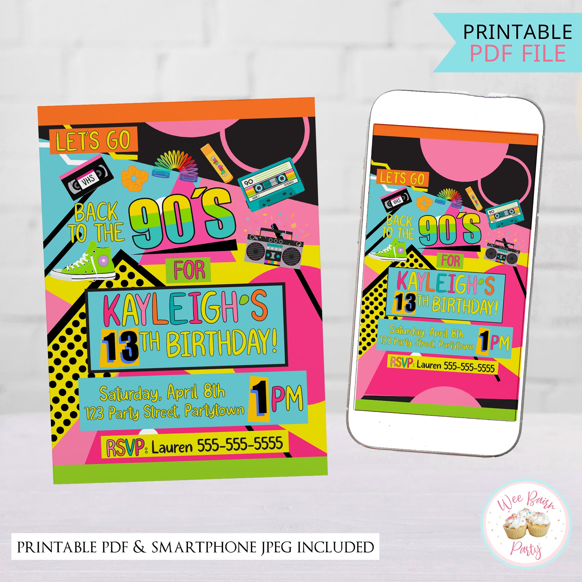 90s Theme Birthday Party Favors, Girl Back To The 90's Party Birthday Decorations --PRINTABLE PDF--